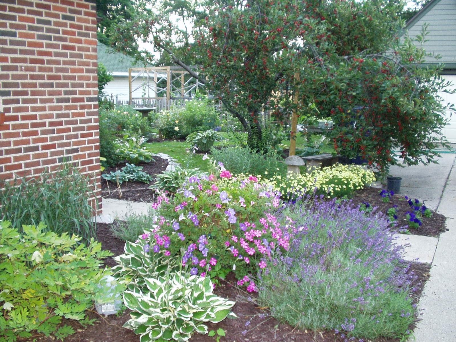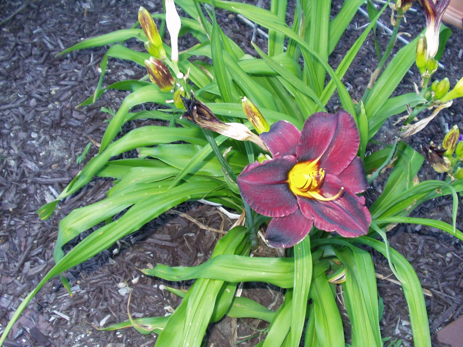 But I also love the day lilies. I especially love the new shades of pink, although I think my favorite is a deep deep red lily that I bought from a woman who has a day lily farm. A friend told me about her several years ago when I still lived in Portland. I bought several plants from her, including the dark red. I wish I had kept the tag because I do not know the name of it. When I moved to Grand Rapids, I took a clump with me and heeled it in that first year. This spring I moved it to the secret garden and it seems to like it there.