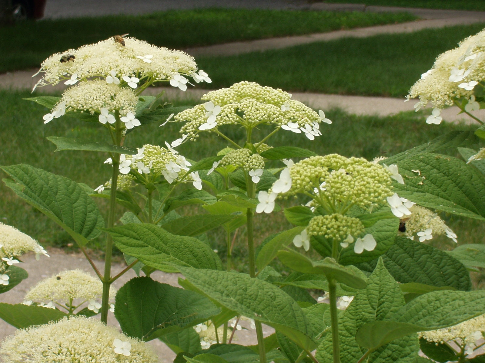 I love mid July. The garden bursts into bloom in July. The day lilies are flowering and, if I’ve kept up with the watering, the annuals are at their most lush. I am most surprised at the white dome hydrangeas, though. I had no idea they were fragrant. Last year the blooms were small and few, but this year, both the front and back yard plantings are tall and full of wonderful white lace caps. And bees. And wasps. I found a very large black wasp on one of the front yard white domes. It was at least and inch and a half long, all black, with large wings folded neatly back across its body. It was a Great Black Wasp. They are not aggressive and live in burrows under ground. There were all sorts of other bees and wasps, all nuzzling the pollen in the large lacy domes of tiny flowers. The pollen is so heavy that it drops onto the leaves below the flowers. I hear a wonderful lazy drone when I approach the hydrangeas, pollen songs, I guess. I learned only a few years ago that honey bees are not indigenous to North America and read a speculation that if honey bees were not introduced, we would appreciate other pollinating insects more.