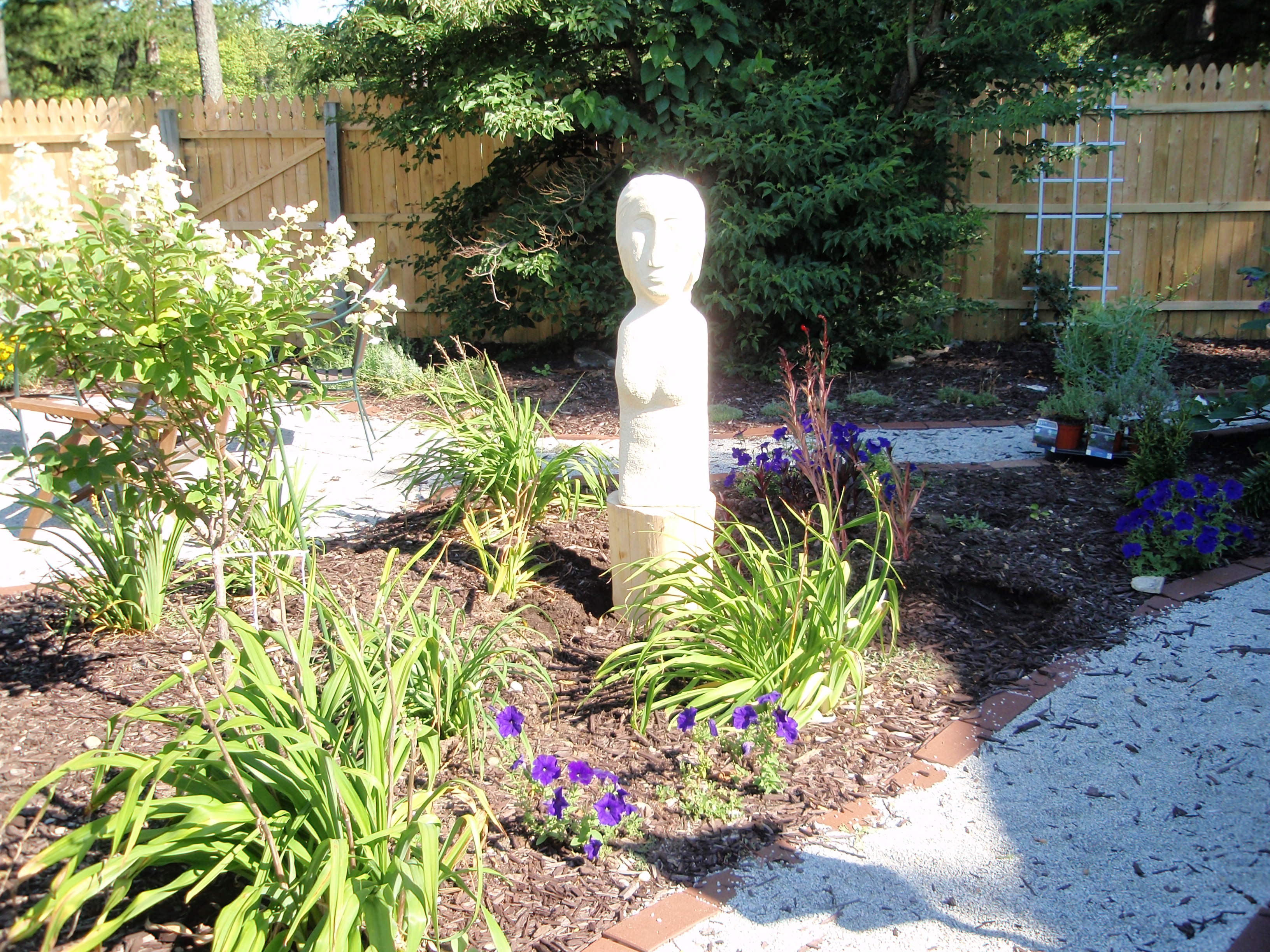 She’s standing right now in my garden. Casey and his wife brought her down to see how she would look. I suspect she will not leave. Casey said something about pegging the statue, and I think that means he will stabilize her on the pine stump that forms her base.
