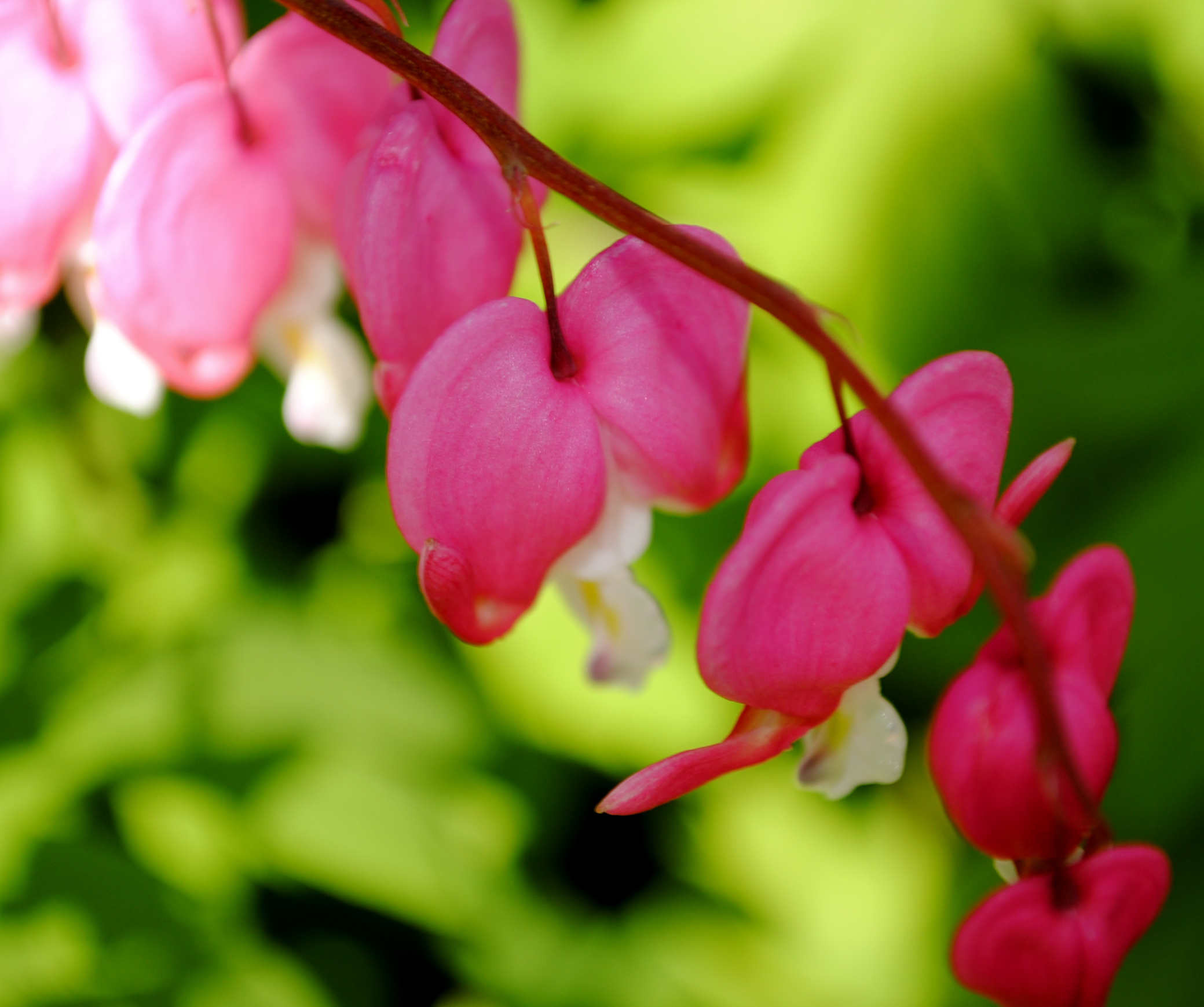 Three or four years ago I planted two bleeding hearts in a little corner. Behind it is an old rambler rose that a neighbor gave me the first summer I moved in. It is doing well, but the bleeding heart is thriving. I planted another one behind the garage in a little corner, but it doesn’t get warm sun early in the day, and it doesn’t have sun warmed bricks to urge it on.