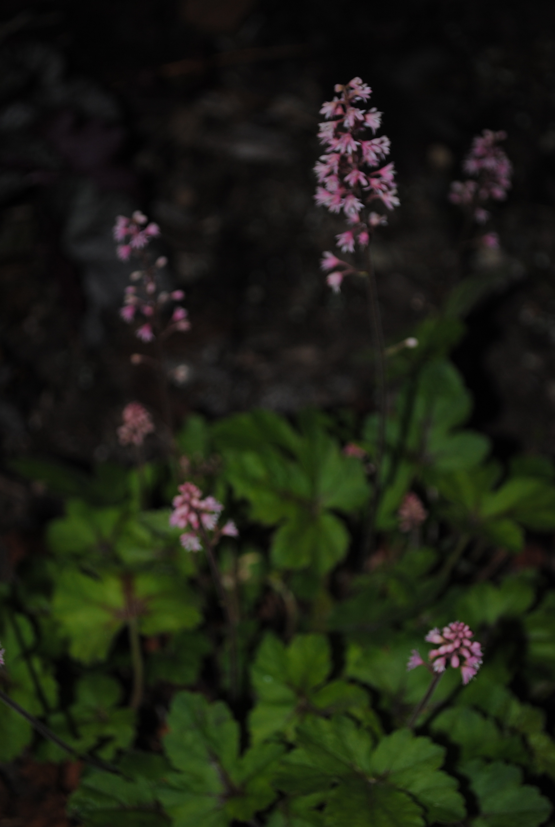 The first of the Heuchera are blooming. This one is actually not a true Heuchera, but a cross between Heuchera and Tiarella–Foamy Bells. I like the contrast on the leaves, and it sits well with the Heurcheras that I planted between the boxwoods and the brink entrance way.