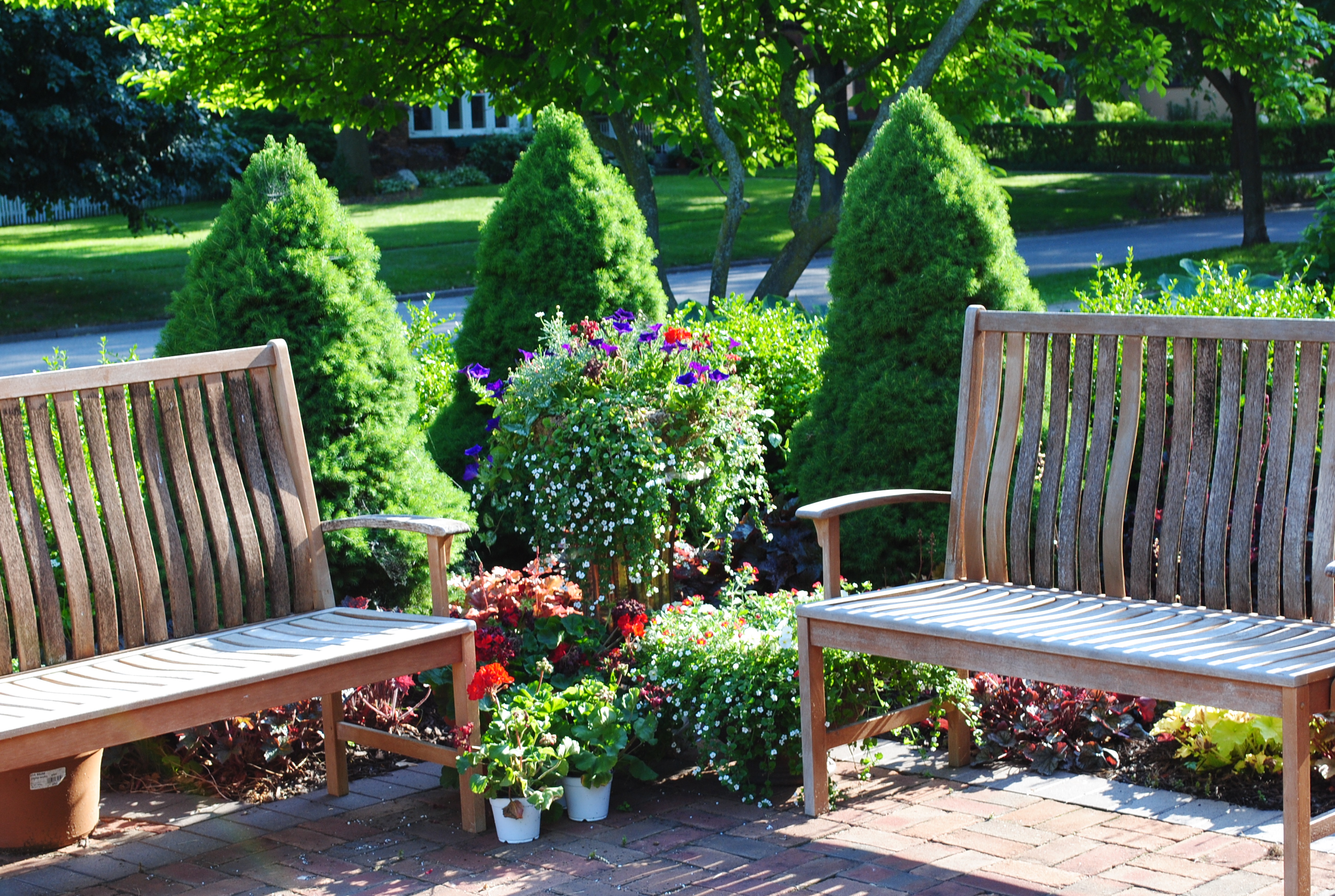 Yesterday was very steamy and it was hard to work in the garden. In the evening when the temperature dipped a bit, the bugs came out. I am a mosquito magnet and finally gave up and went inside. But not before I took this picture of the from entrance garden.
