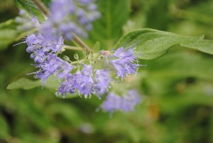 At last the Caryopteris is blooming! It seems late this year, but perhaps it is just my impatience. I have Blue Beard and Blue Knight, and unless I consult the garden book, which is upstairs, I don’t know which one I’m looking at. Blue Knight has a slightly darker flower, I think. I had Caryopteris in my Portland garden, but it never did as well. It loves the gravely soil here at 337. In fact, the plan was to underplant it in front of the White Dome Hydrangeas. But it gets taller than the White Domes as much as 12 inches.