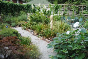 And though the dramatic blooming time is over, the garden continues to work its charm. But I’ll be so glad when the Dutchman’s Pipe fully conceals the supports and creates a solid west wall for the Secret Garden. What’s the use of having a Secret Garden if it’s not a secret?