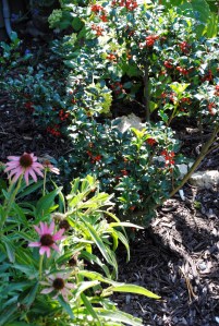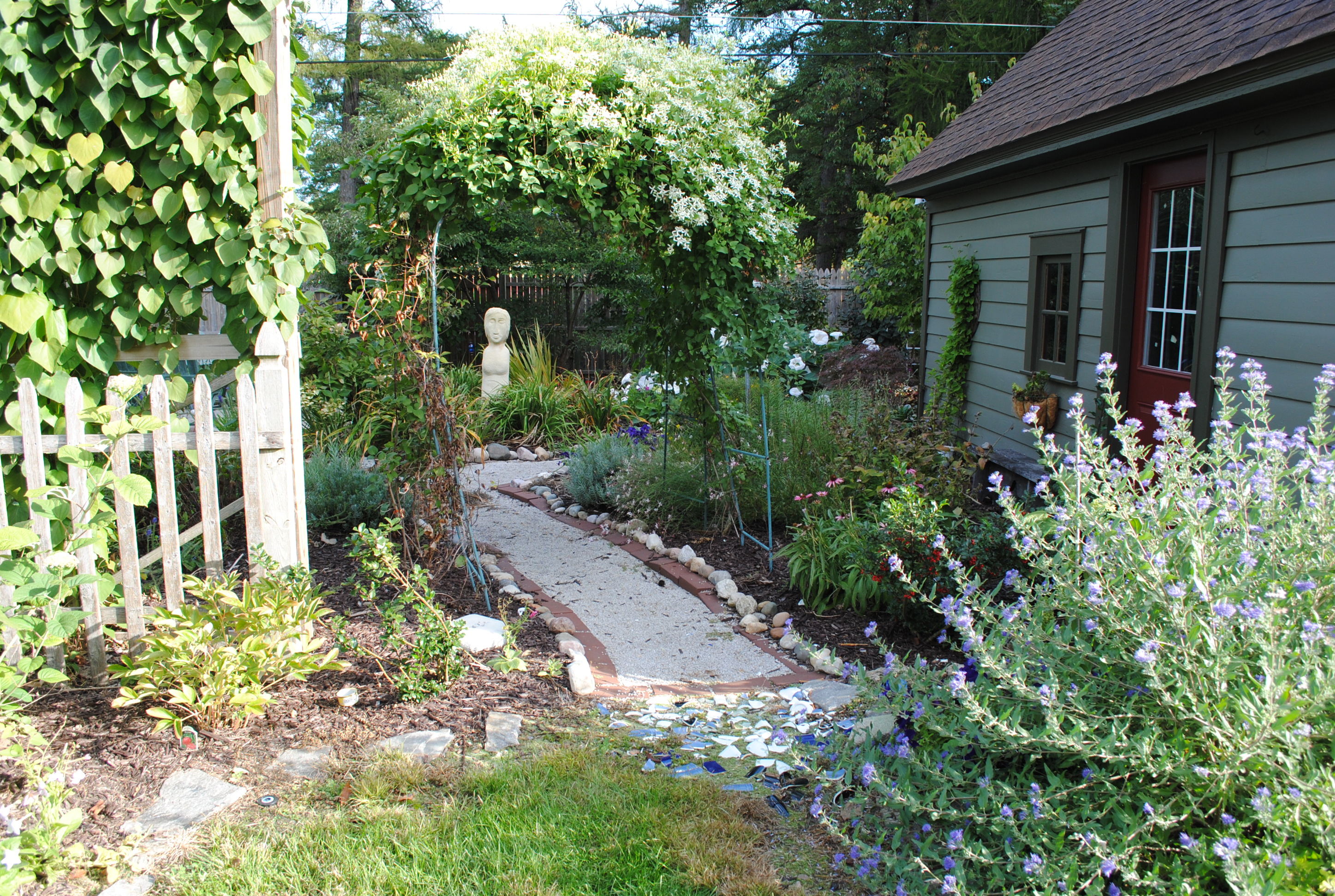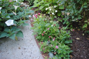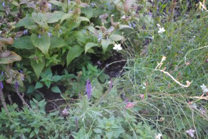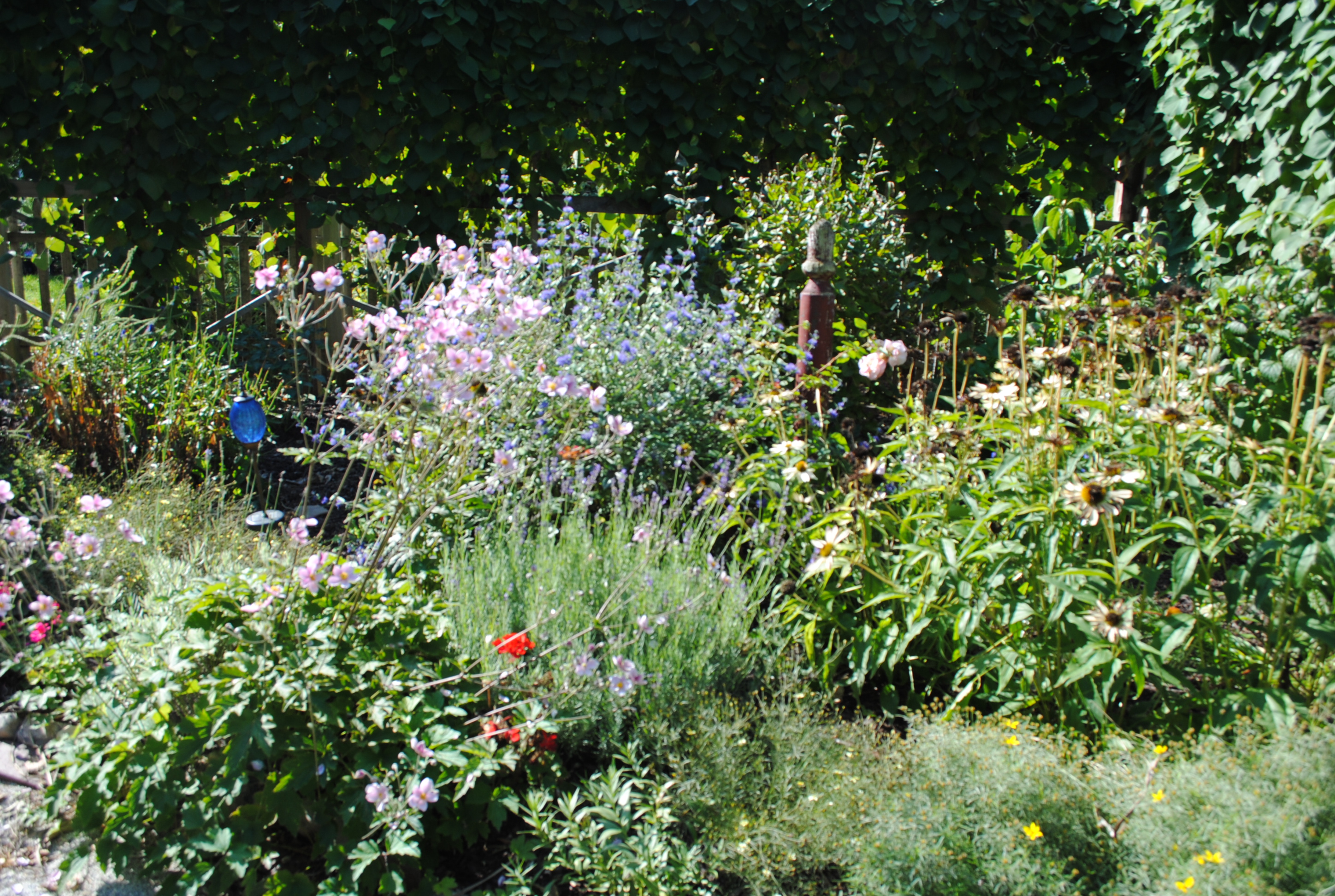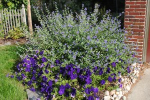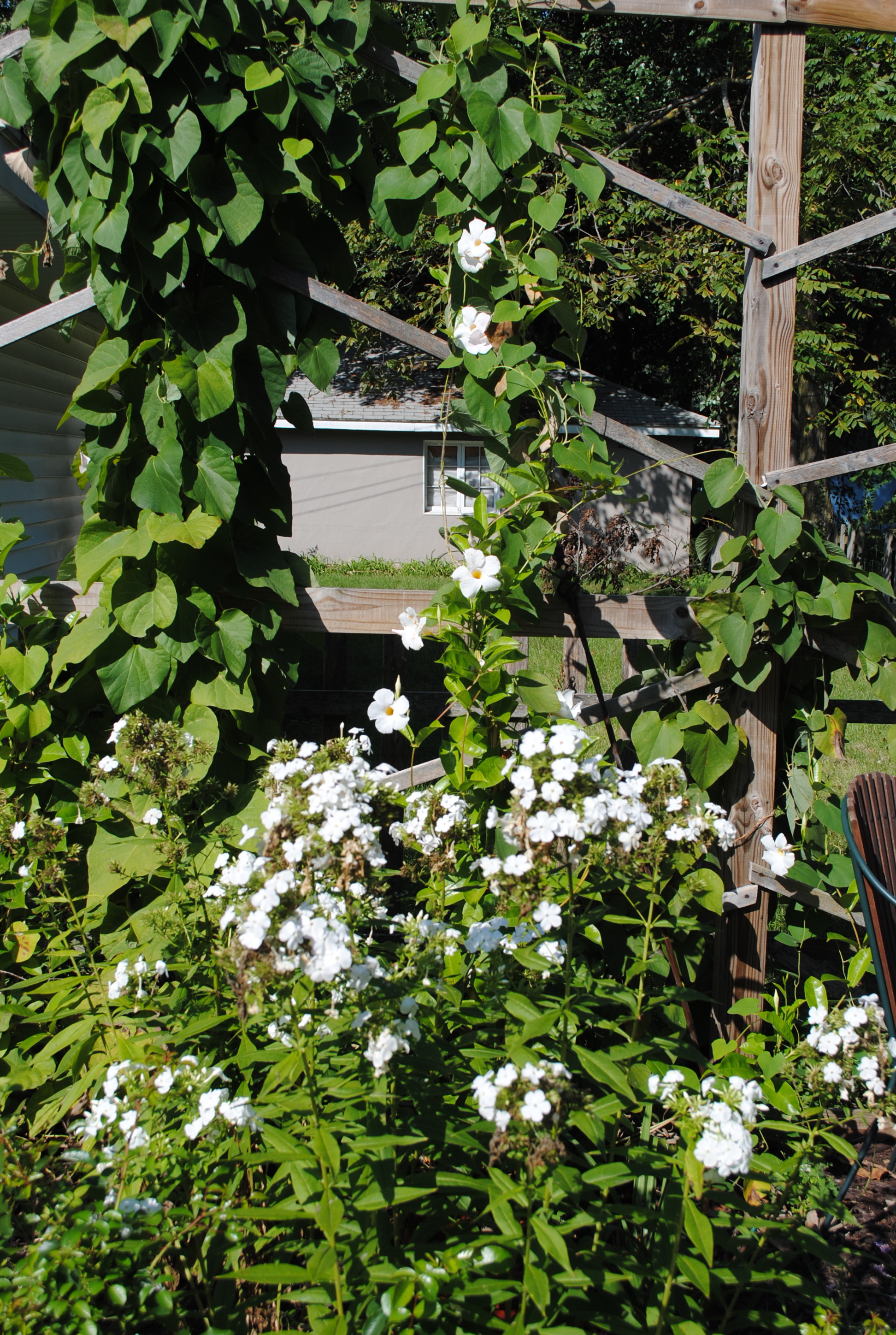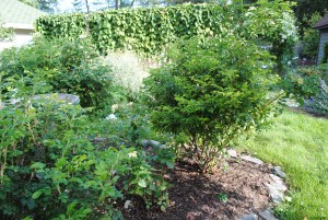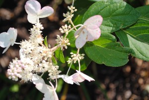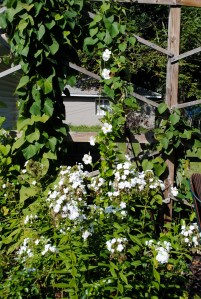 And the garden keeps on tickin’! Today the Sweet Autumn Clematis and the Caryopteris are the stars. But the hansa roses continue to bloom, as do the hydrangeas. Though, the hydrangeas have all gone into their late flower mode where the petals darken. But this is the perfect time to pick those flower heads for winter bouquets. Young flower heads wither. But the mature heads dry beautifully.