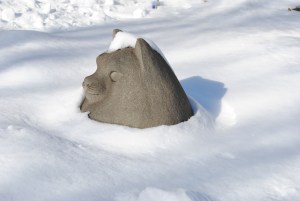 We got about 16 inches of new snow on top of the roughly eight inches that were already on the ground. The cat sculpture in the front is almost submerged in snow.