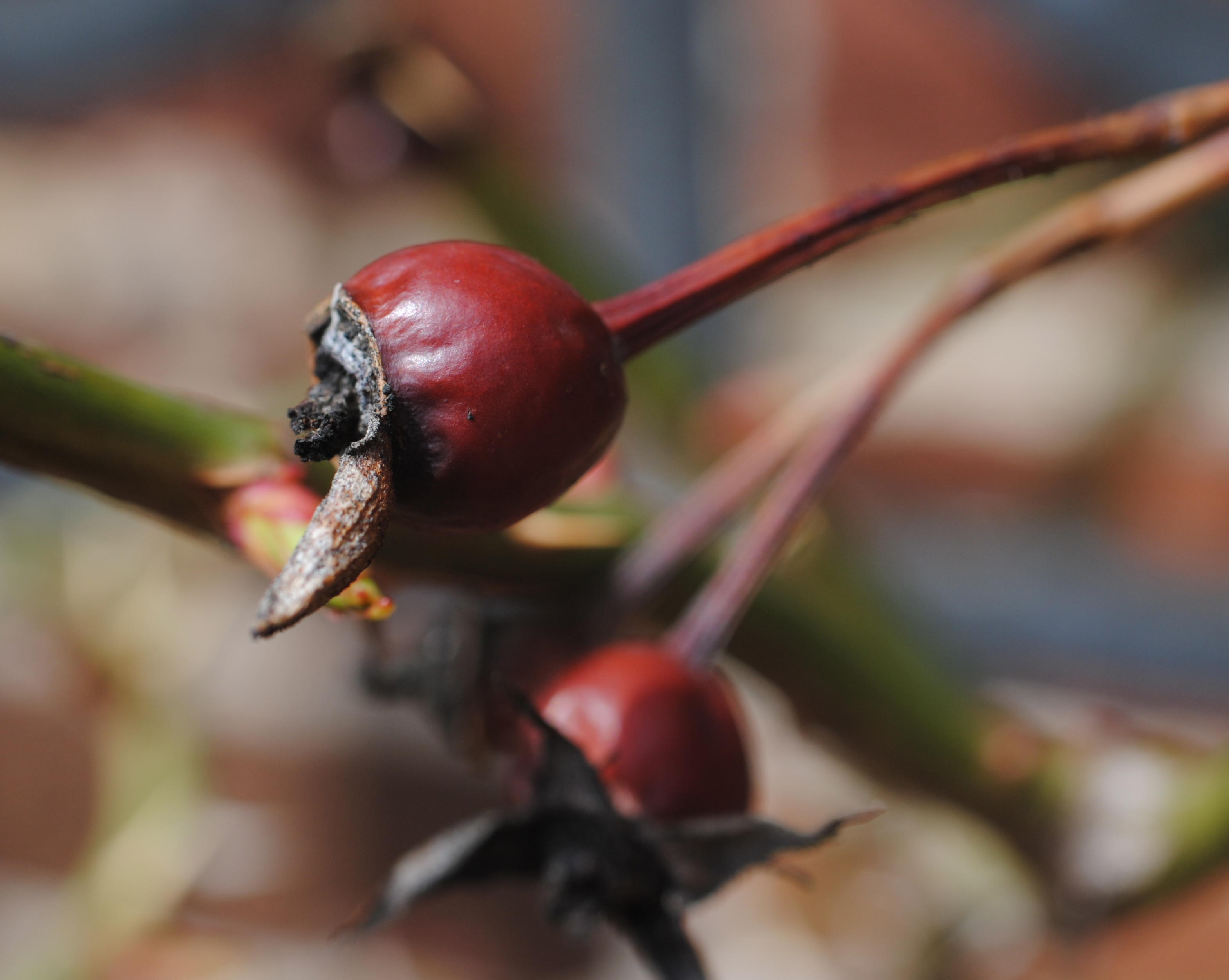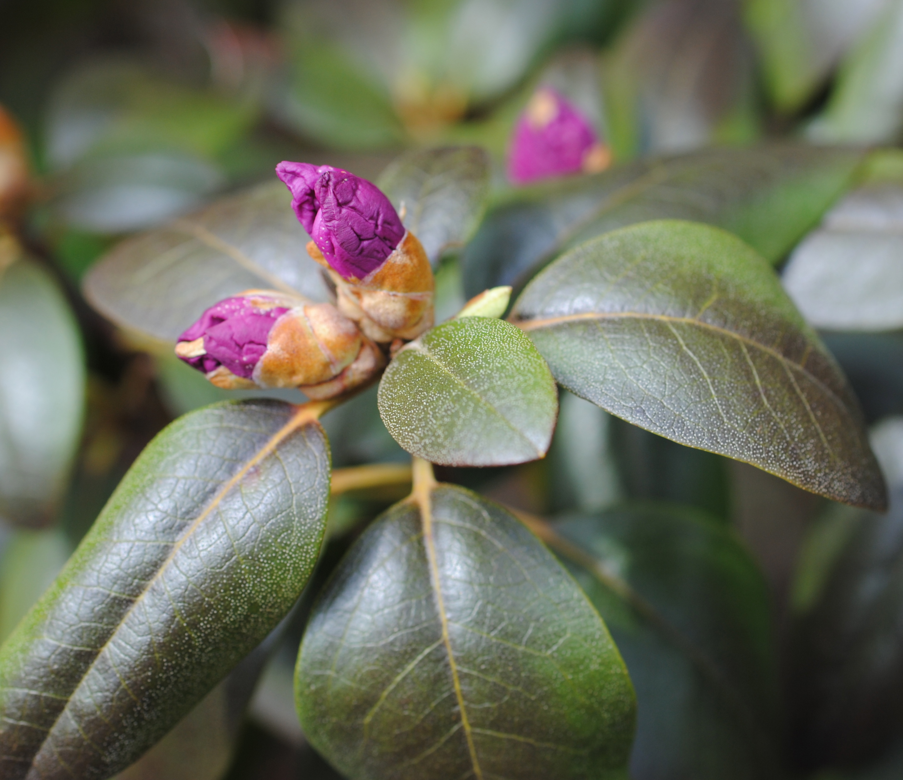 I couldn’t resist taking a picture of the old rose hips that hung on over the winter. But just a few feet from them are the rhododendrons. These bloom earlier than the Panas . I wish I knew the name of these rhoddies, but I don’t.