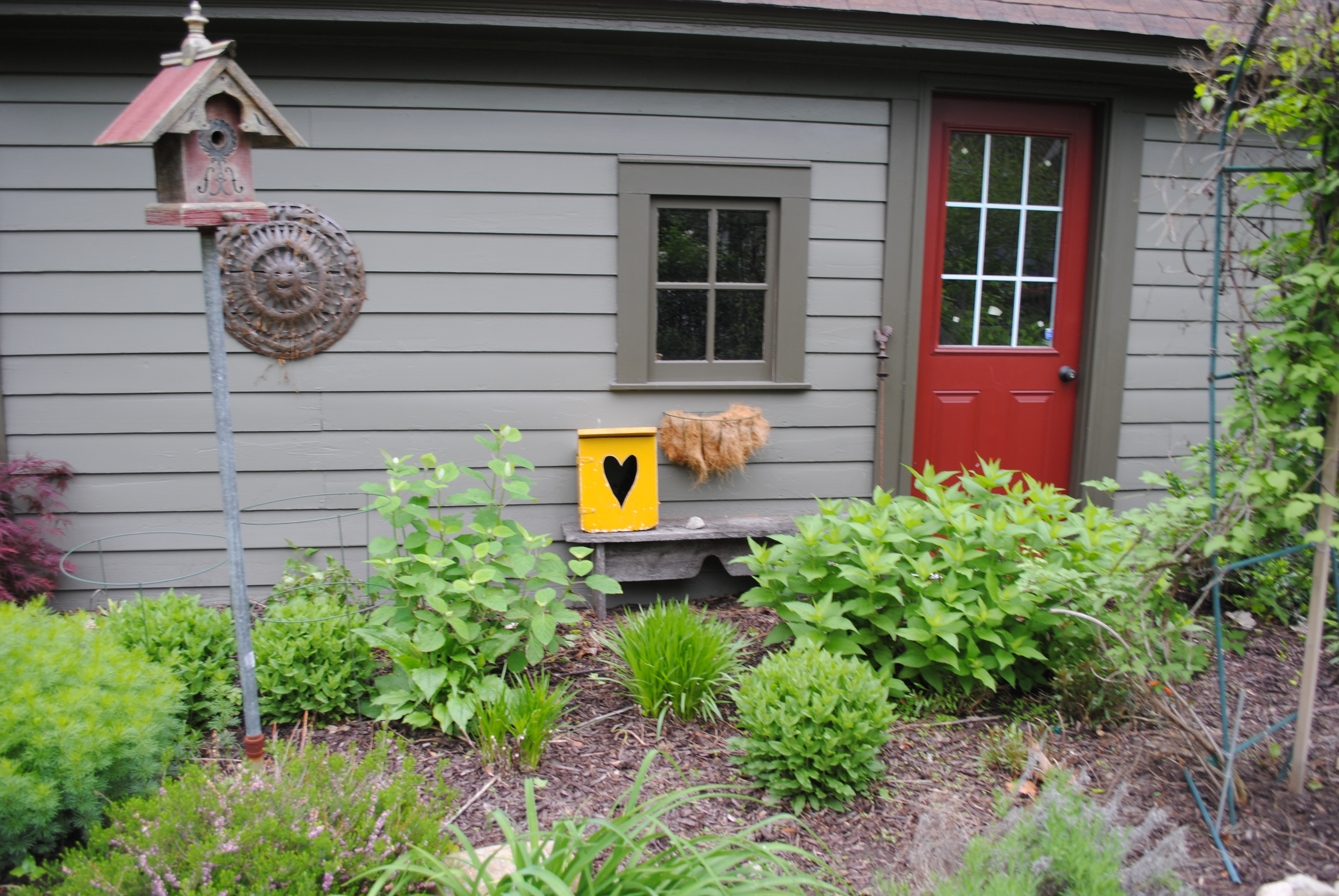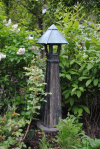 Part of the fun of going to the Leelanau Peninsula is poking around all the little shops. I found two fun items at a little shop in Leland. I knew I wanted the mustard colored box and only learned after I inquired about it that it is an owl box. It was the wonky heart opening that sucked me in. And the color. The other treasure was more expensive. And heavy. It’s a yard light, sort of shaped like a light house. I loved the patina, the copper cupola, and, oh, I don’t know. I just kind of knew it would look good in the Secret Garden.