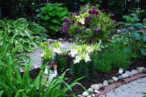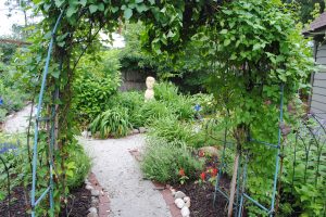 Tuesday evening we got more than four inches of rain within about 30 minutes. I don’t think I’ve ever seen that much rain fall so fast. But it’s been a rainy June and the garden is almost too lush. I’ve thinned some of the hostas already and no one would know. The New Dawn climber is threatening to take over the fence. And, actually, I don’t care. I pruned the lilacs in hopes of getting more blooms next year and to give the climber some breathing room.