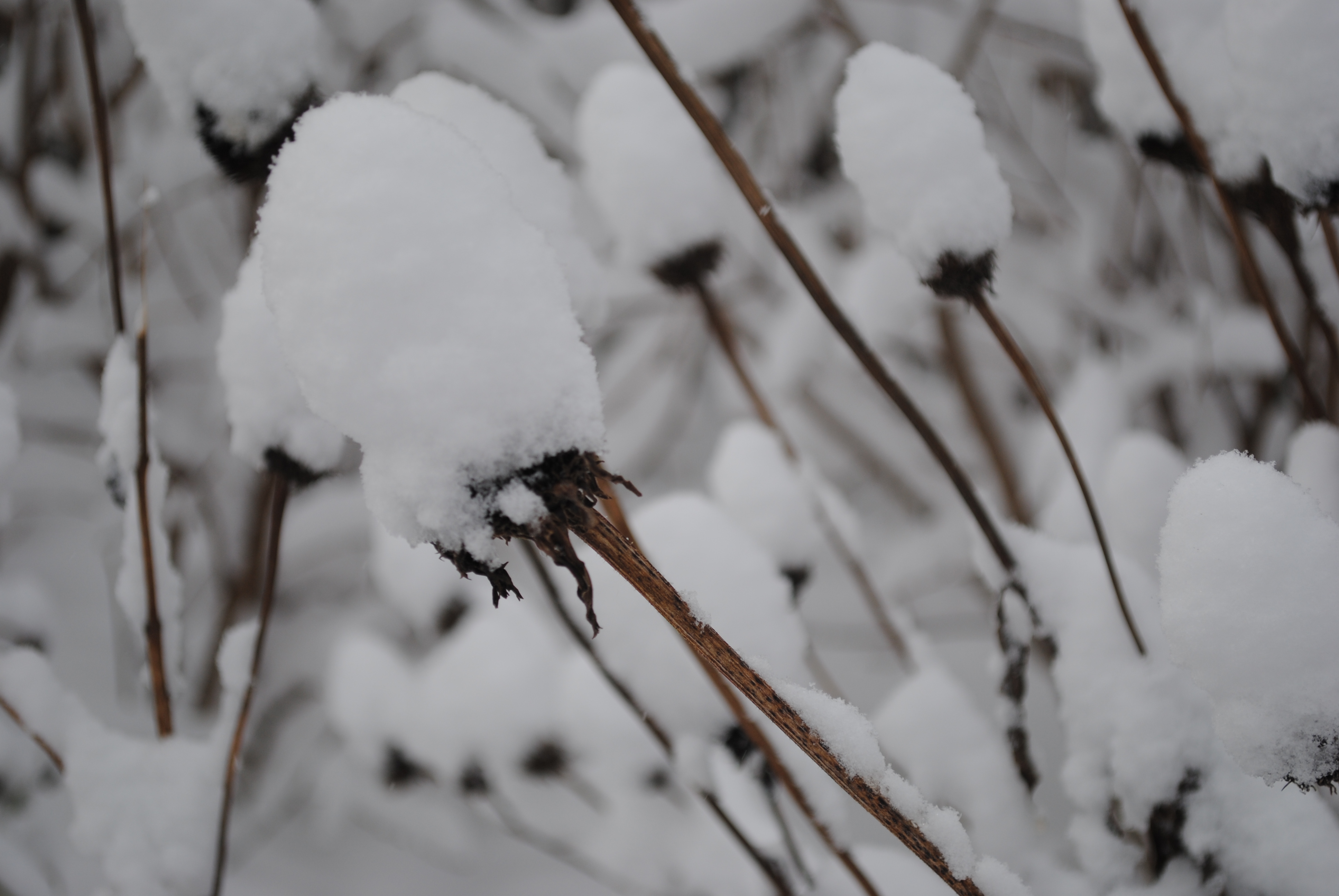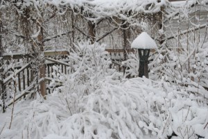 I confess I haven’t done any close looking at the garden. The older I get, the more sensitive to cold I seem to be. But the heavy snow we got this weekend turned the garden into a fairy land. It makes me feel a little better about the fact that I didn’t get to all the fall cleanup that I generally do.