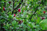 Last spring was the first time I noticed that an old climbing rose that has taken over the fence that separates my yard from the neighbors’ driveway had twined itself into the old rose of sharon. At first I was alarmed. Would the rose choke the tree? I was assured that it would not and that some gardeners actually plant climbing roses with trees so that they will use the trees as support. So, I accepted this old rose’s presence and have been looking forward to its pretty red show. Too bad it isn’t a re-bloomer. I may have to plant a red climber on this side of the fence so that I can see roses in the rose of sharon tree more often.