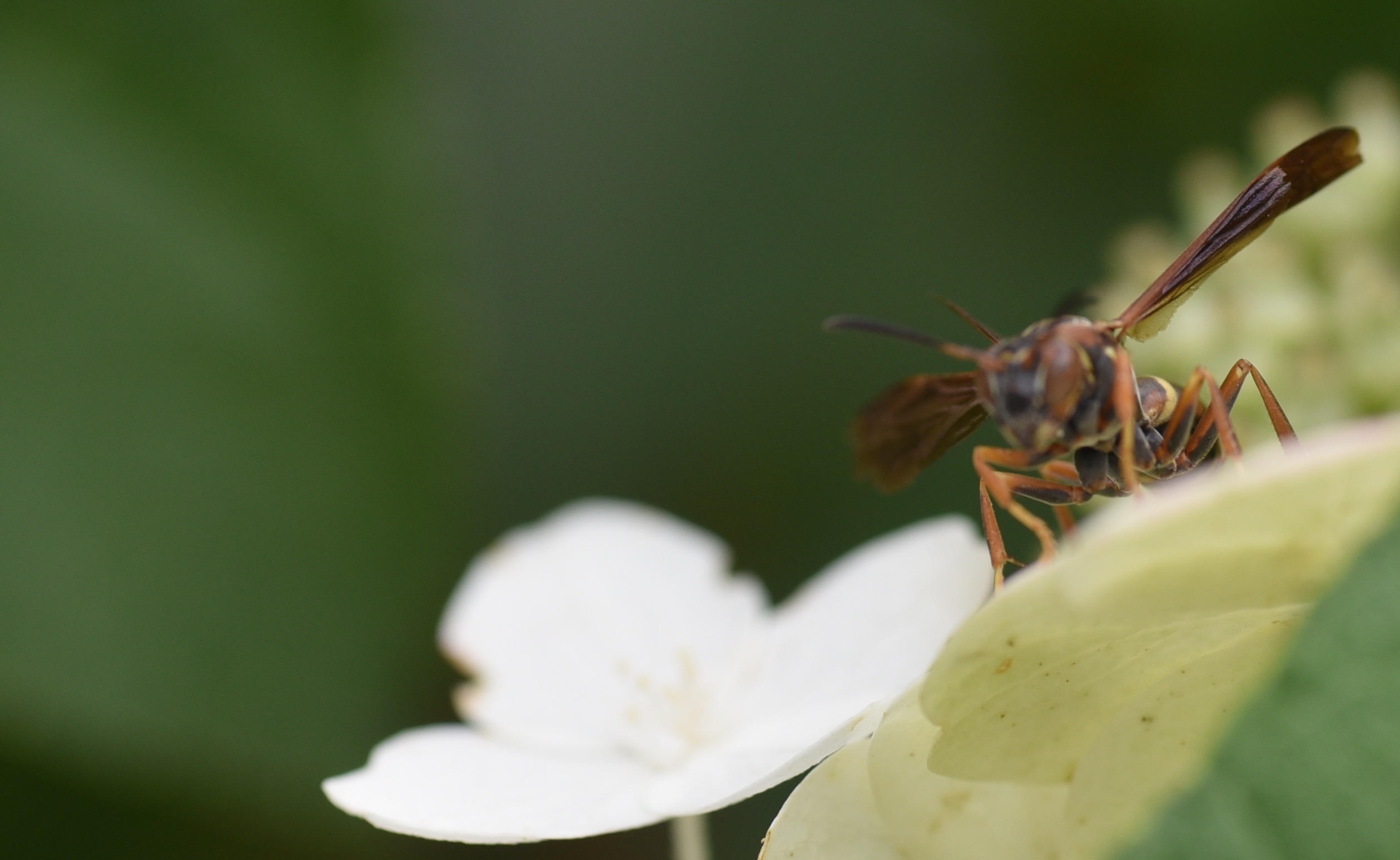 Paul Zammit, the Nancy Eaton Director of Horticulture at the Toronto Botanical Gardens, talked to Flingers briefly about the importance of native and honey bees. He asked us what color bees are drawn to the most. I thought it would be red. Others thought it might be yellow. It turns out bees are drawn first to white flowers. I should have known. When I want to try and photography bees in my garden, I go first to the Tardiva hydrangea. Because it blooms later (hence the name Tradiva), it provides pollen and nectar to all sorts of pollinators including wasps and butterflies.
