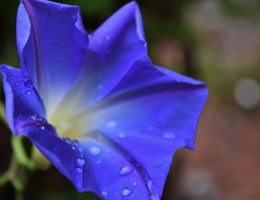 It’s been a dreary, rainy day, and it perfectly intensified that morning glory blue. The raindrops are just an added bonus. I’m glad my young standard poodle, Lucy, and I got our two mile walk in before the rain came.
