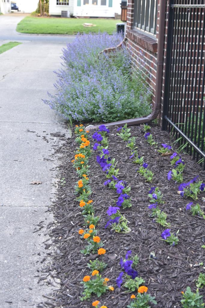 Gardens are always about patience. I a couple weeks this bed , part of the fence installation aftermath a year ago, will look lush and in the evening those purple petunias will give off their wonderful vanilla fragrance.